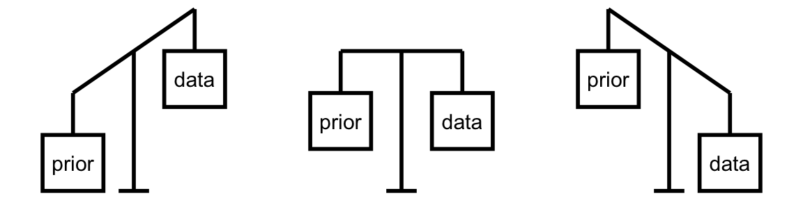 By Bayes’ Rule, the posterior model is constructed by balancing the prior and likelihood: