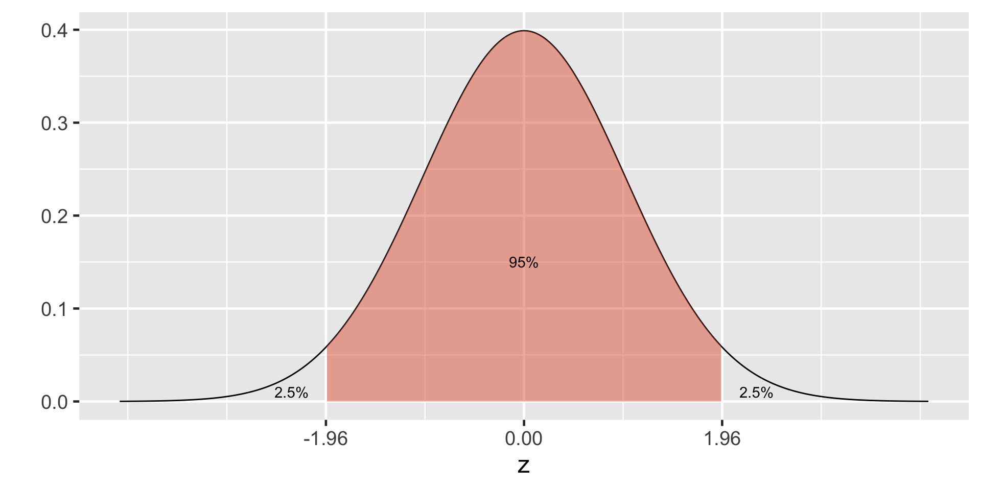 95% of the data falls within 1.96 standard deviations in the normal distribution.