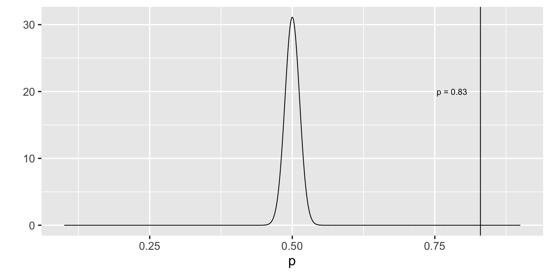 We want to know the probability of observing an extreme sample proportion like ours (p = 0.83) if the \(H_0\) were true.