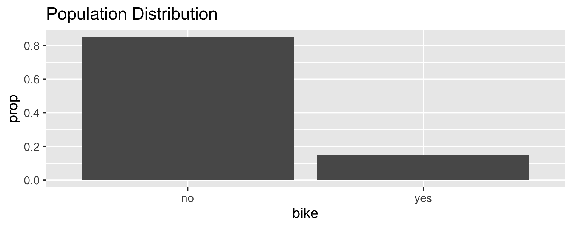 Let \(\pi\) represent the proportion of bike owners on campus then \(\pi =\) 0.15.