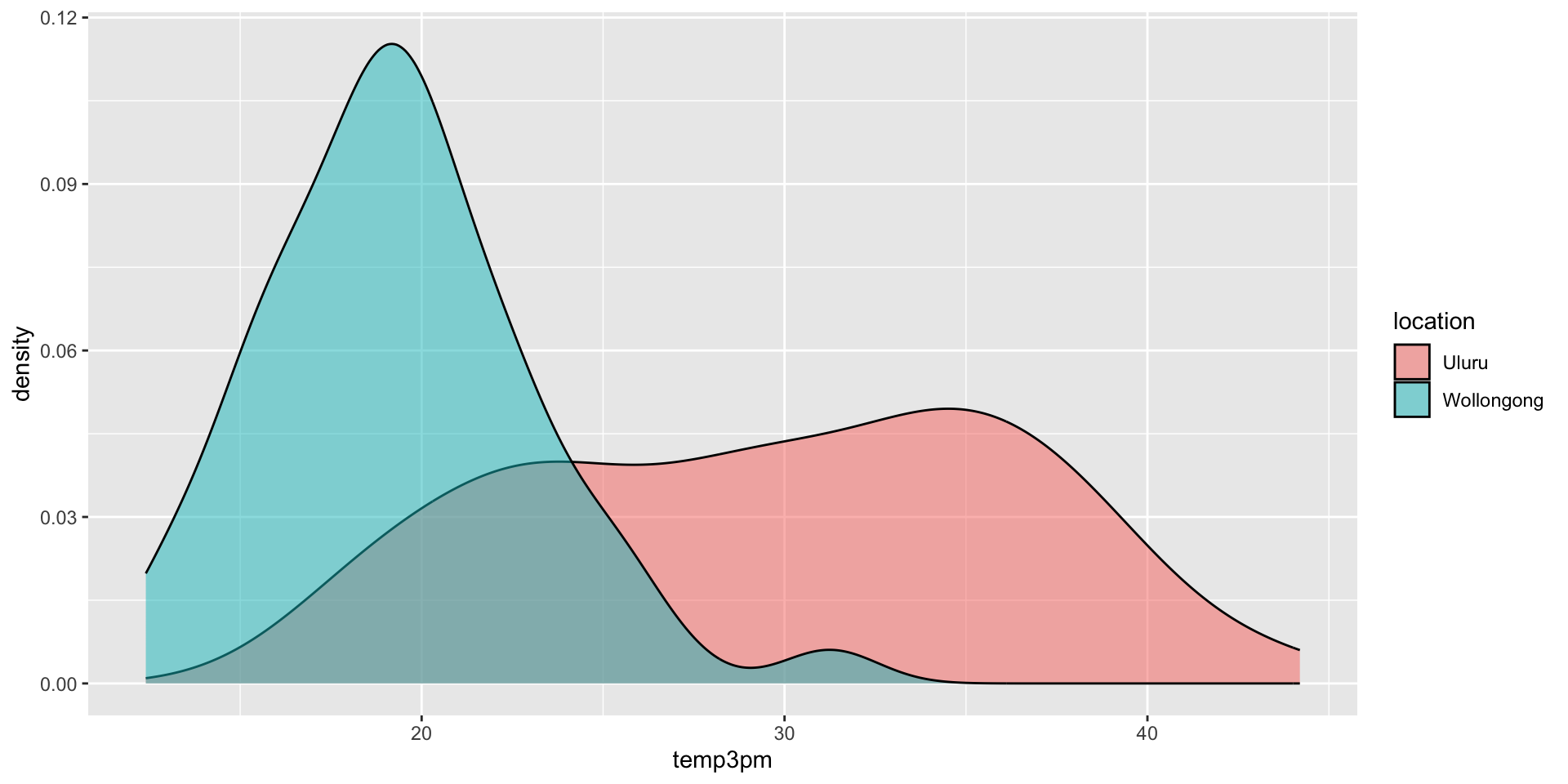 \[X_{i2} = \begin{cases} 1 & \text{ Wollongong} \\ 0 & \text{ otherwise (ie. Uluru)} \\ \end{cases}\]